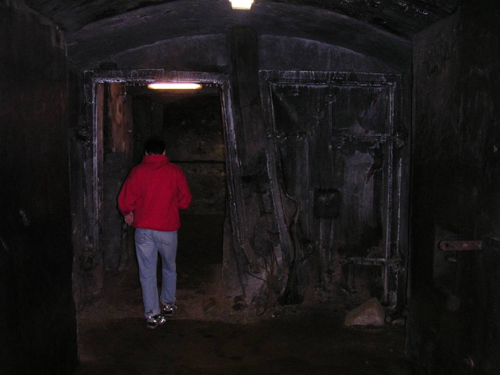 stairs down to this room. One german placed a 50 kg shaped charge to this door and in 60 sec. made the run up the stairs to the outside.